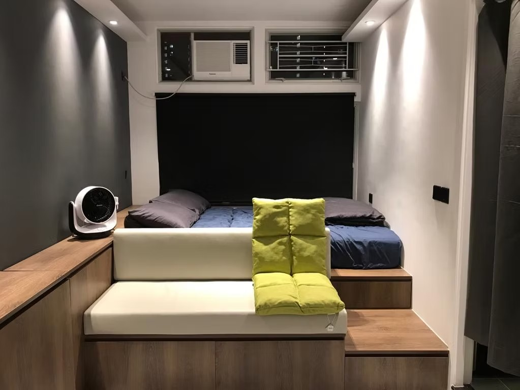 住戶要求將200平方呎的開放式單位極致利用,最大化使用面積、收納空間與自然採光。透過開放式設計,自然光得以灑落室內每個角落,而量身訂製的多功能家具巧妙整合了臥室、客廳、工作區與起居空間於一體,在有限面積中創造出流動的生活場域,讓每寸空間都能隨需求自由轉換,展現小宅設計的極致可能性。